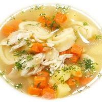Куриное филе, картофель, морковь, лук, галушки, чеснок, специи, растительное масло, зелень.